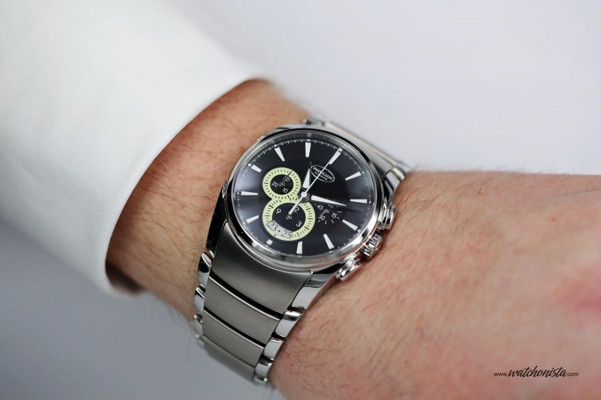 L’esthétique des cadrans de la collection Métro est guidée par un principe de contraste qui met en évidence un aspect choisi de la pièce. Dans la Métrographe masculine, c’est la complication chronographe qui ressort, grâce à la mise en évidence de ses deux compteurs minutes et heures.